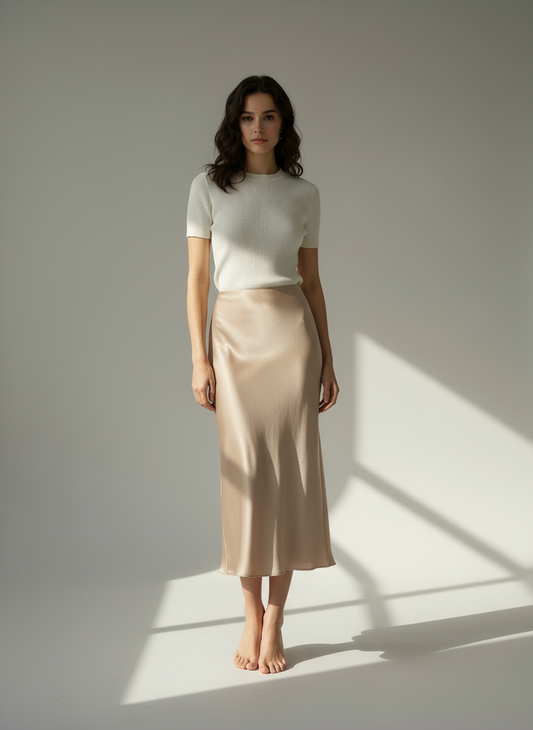 Midi φούστα σατέν μαύρο , μπεζ , γκρι , χακί , taupe