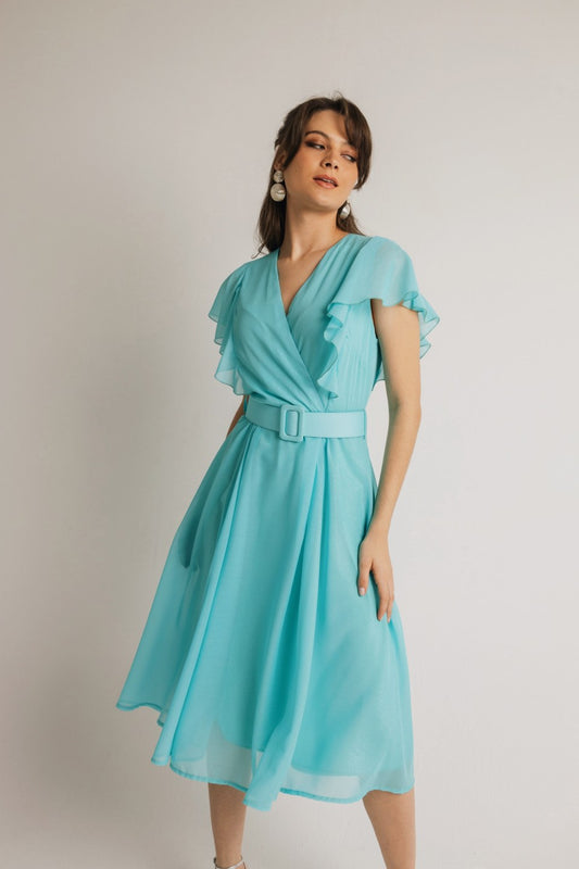 Τιρκουάζ Midi φόρεμα κρουαζε με ζώνη