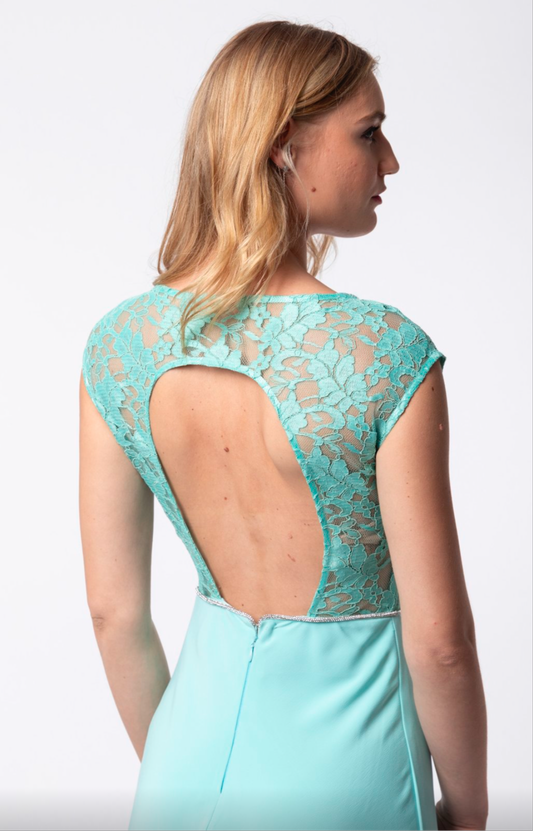 Φόρεμα τιρκουάζ με δαντέλα μπροστά πλάτη έξω σε γραμμή mermaid γοργονέ