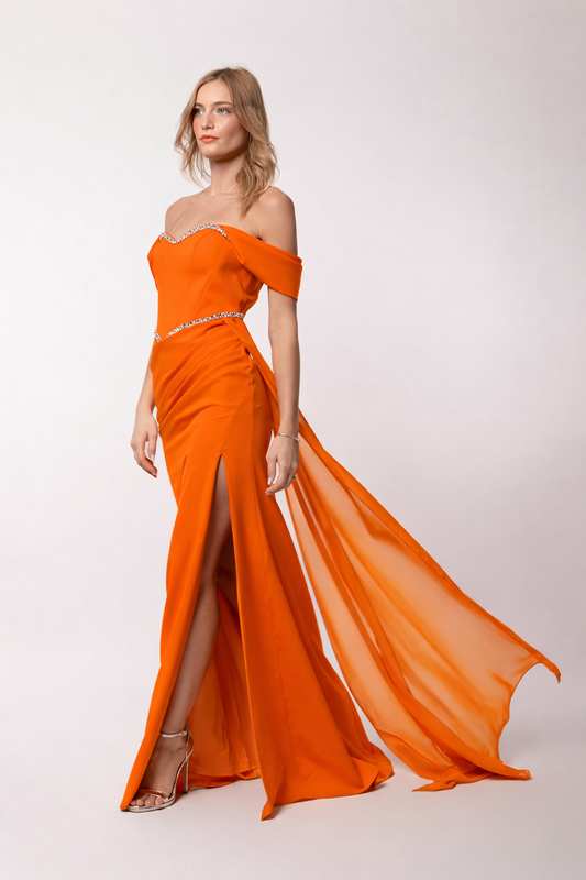 Maxi Βραδινό Φόρεμα Πορτοκαλί για Γάμο DR-1003-52