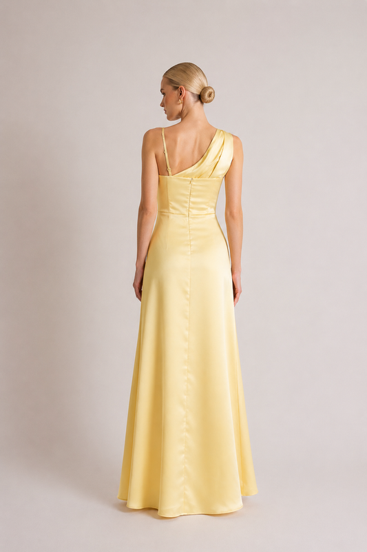 Νεανικό Φόρεμα Maxi με έναν ώμο κίτρινο Για Γάμο, Βάφτιση & Ορκομωσία DR-1005-M