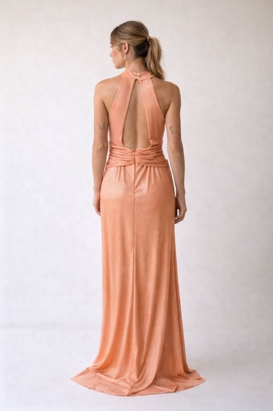 Maxi Φόρεμα lurex νραπέ με ανοιχτή πλάτη – Elegant Νεανικό Φόρεμα για Γάμο - Βάπτιση DR-1006-OR-44