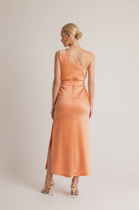 Φόρεμα Κοραλί Με έναν ώμο μήκος αστραγάλου – Elegant Φόρεμα για Γάμο - Βάπτιση DR-10065-S