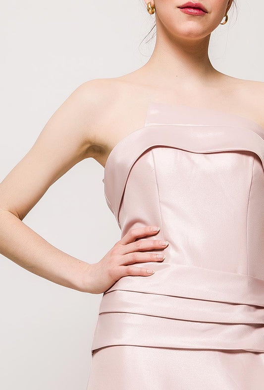 Φόρεμα μαξι ταφτάς στράπλες στο χρώμα της πούδρας