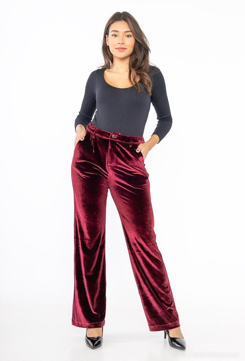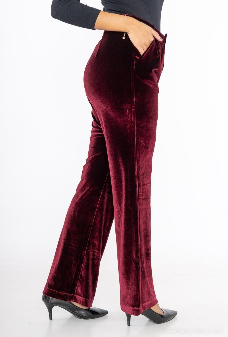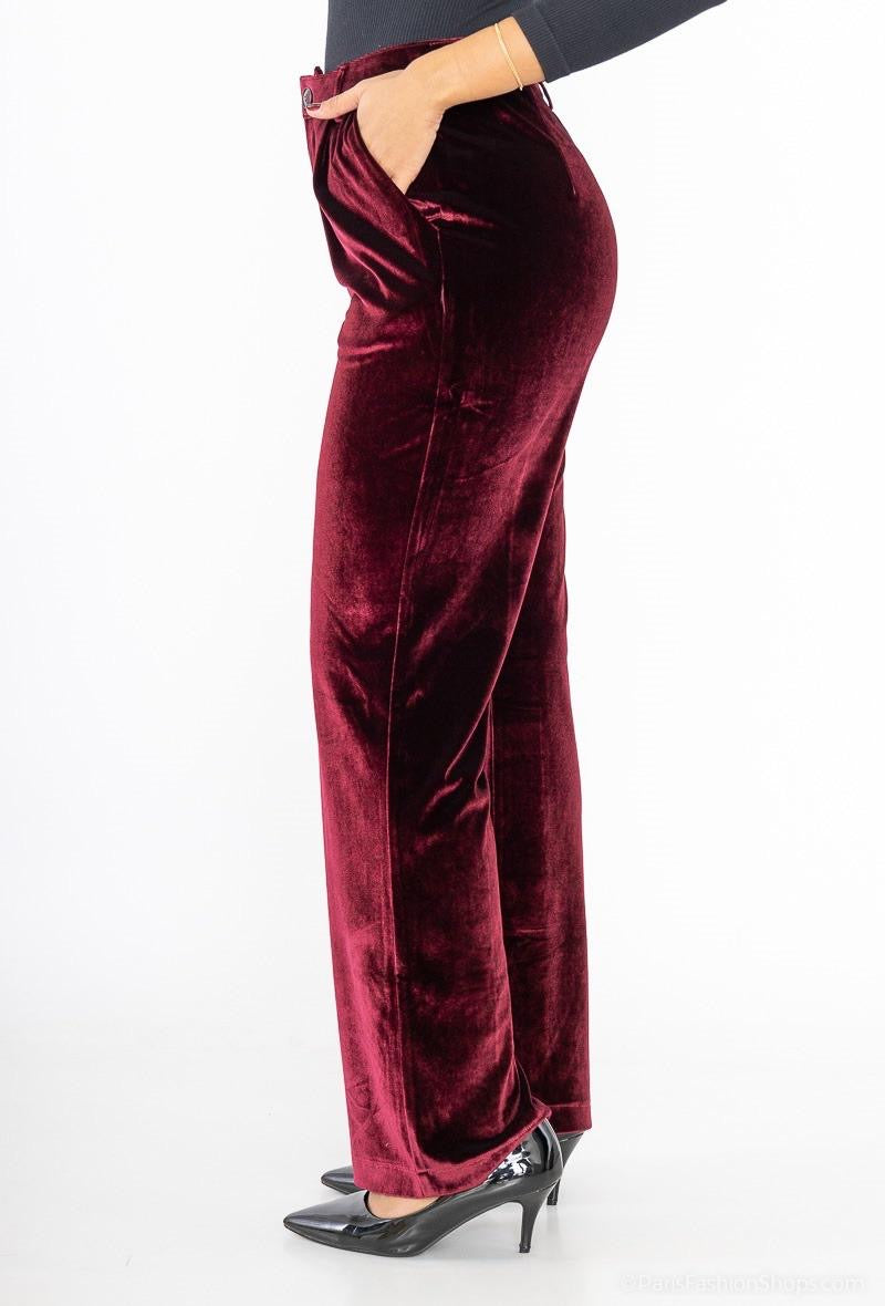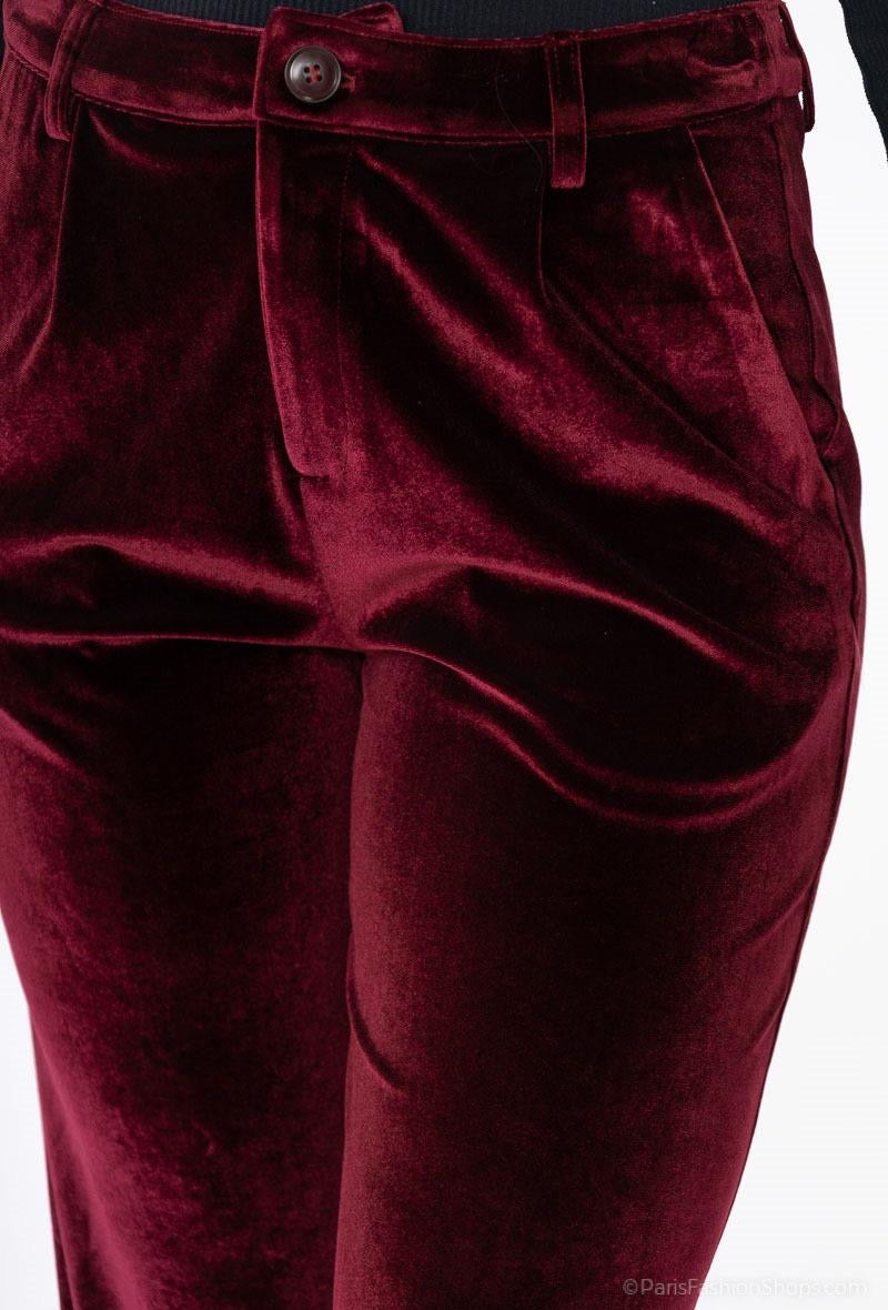 Βελούδινο παντελόνι ίσια γραμμή σε μπορντώ και μπλε σκούρο