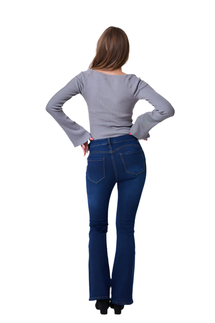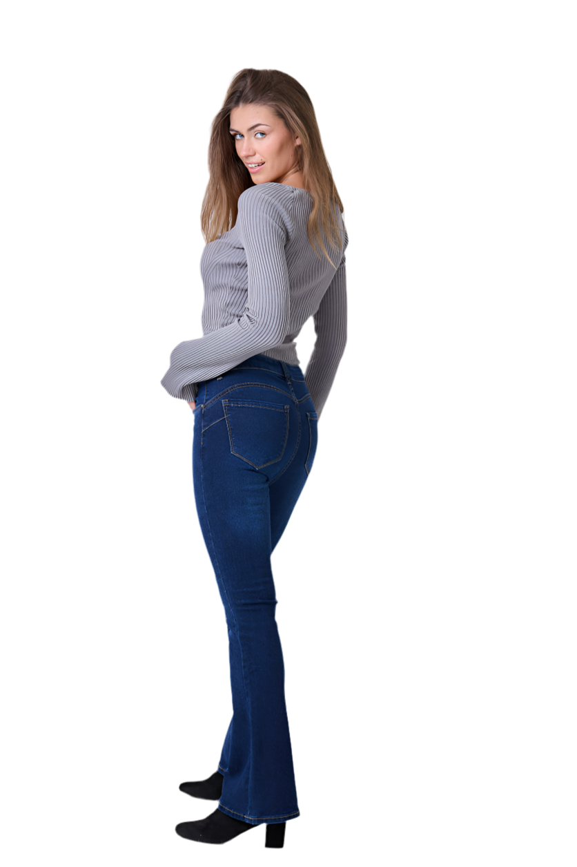 Flare ελαστικό μπλε σκούρο τζιν , μεσαίο ύψος μέσης push up.